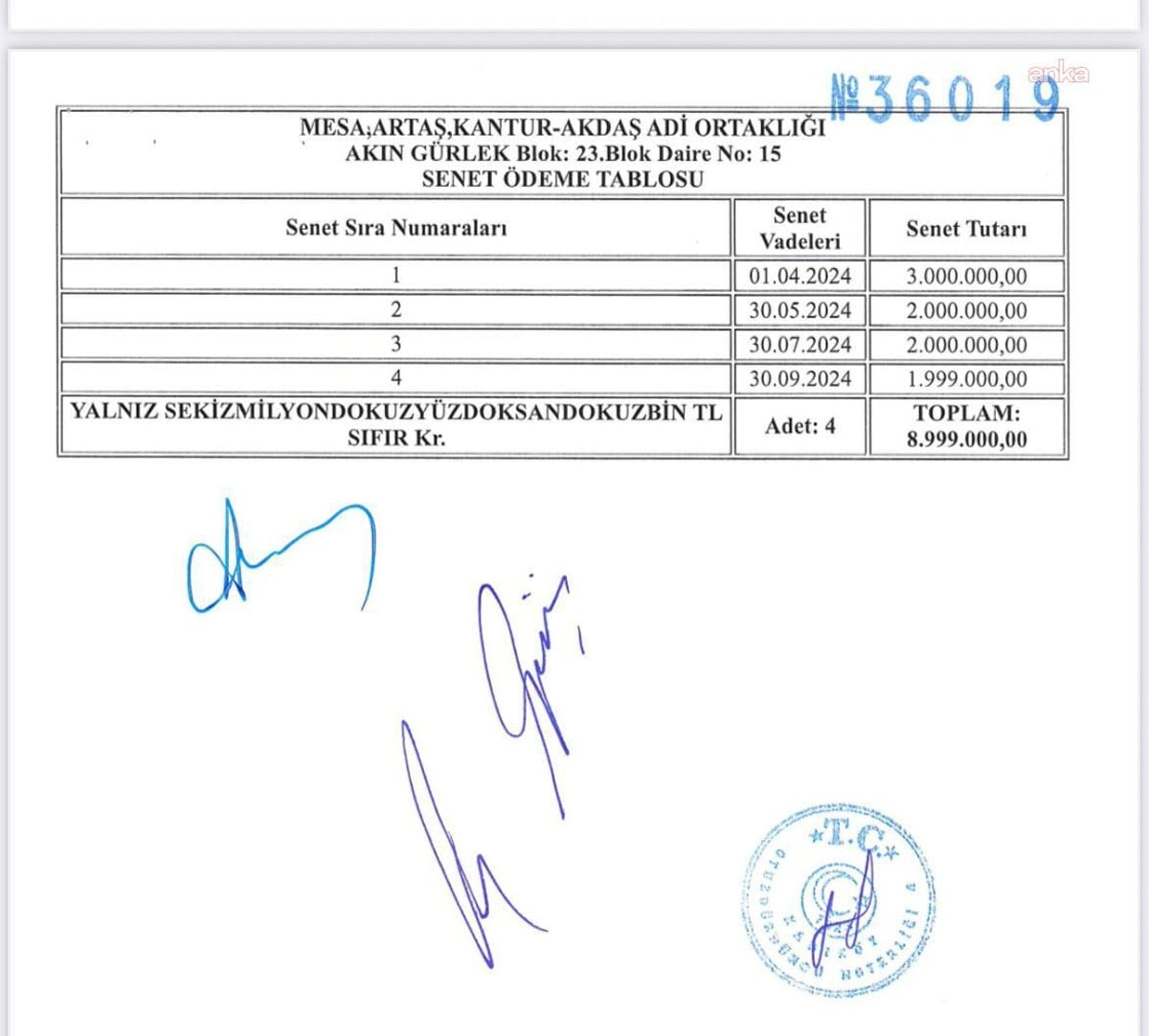 9 milyon liralık senet taksitleri nasıl ödendi?