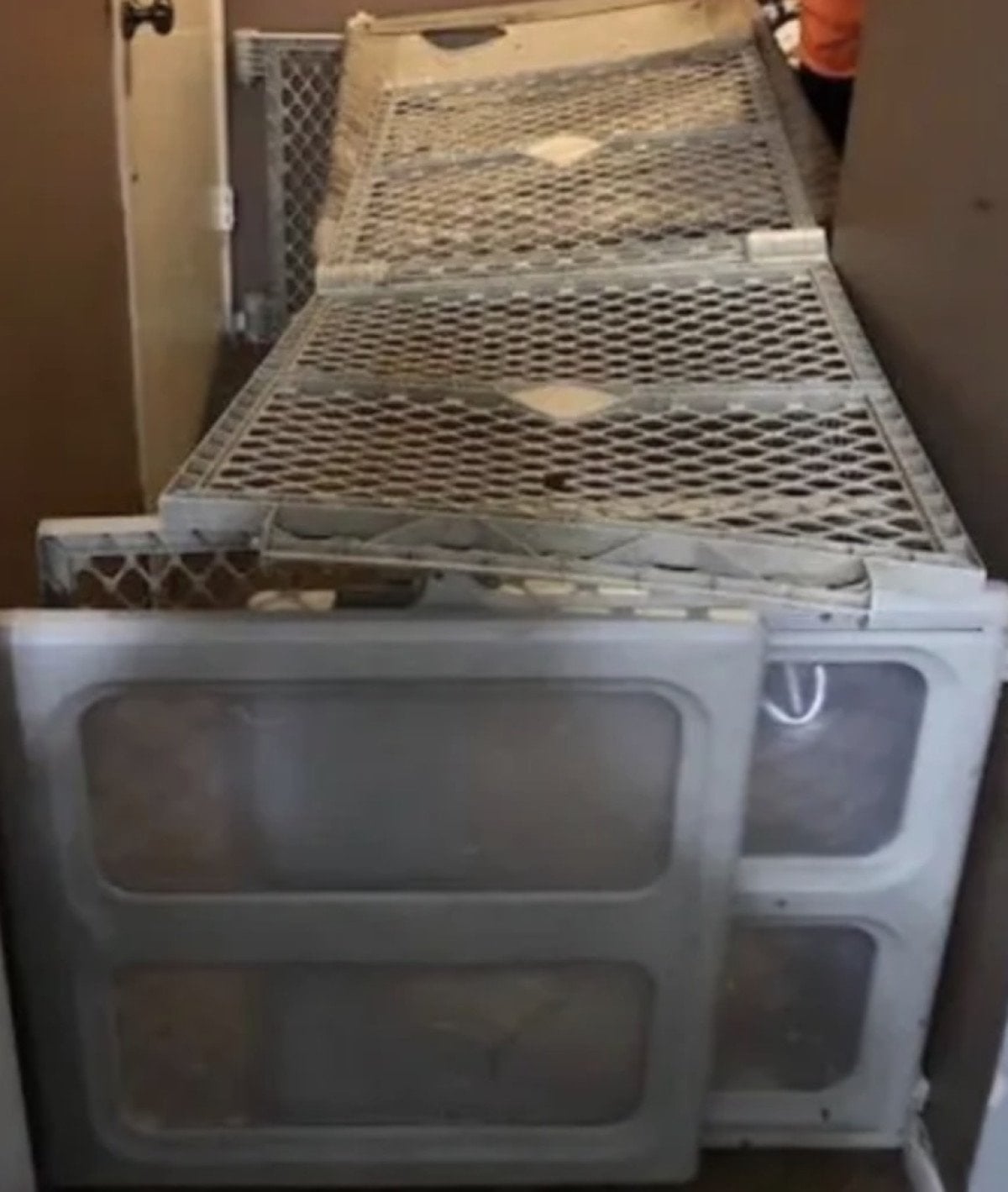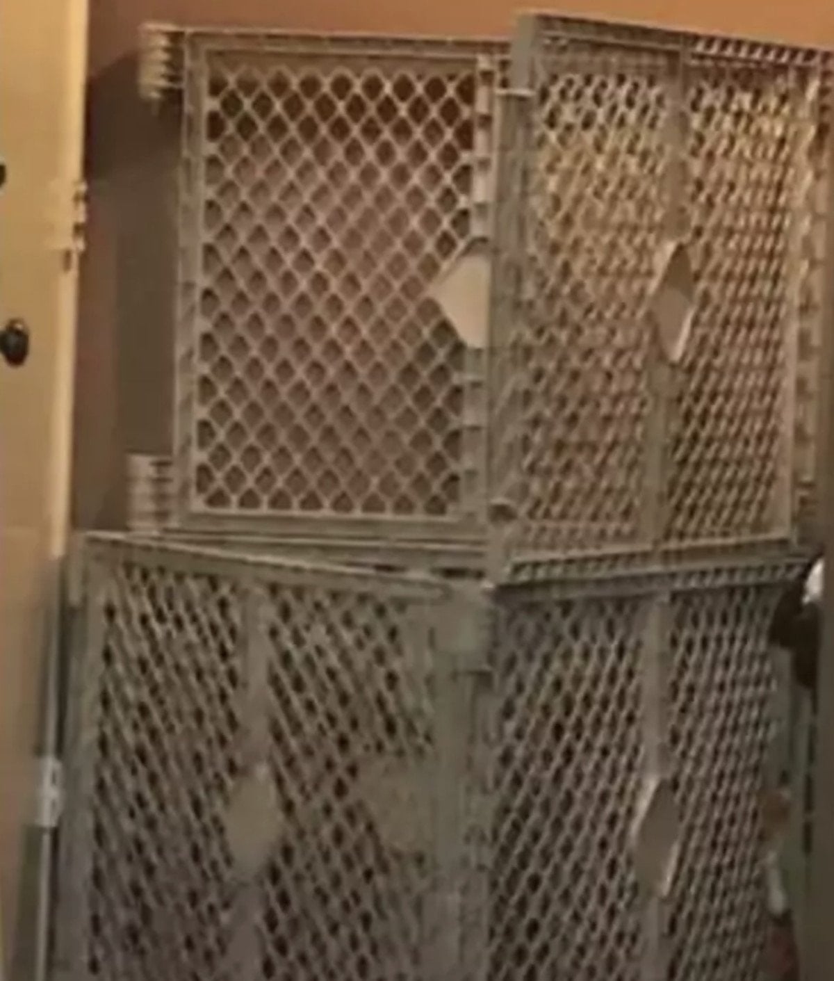 Baskında, iki kardeşin bebek güvenlik kapılarından yapılmış kafeslerde tutulduğu tespit edildi.