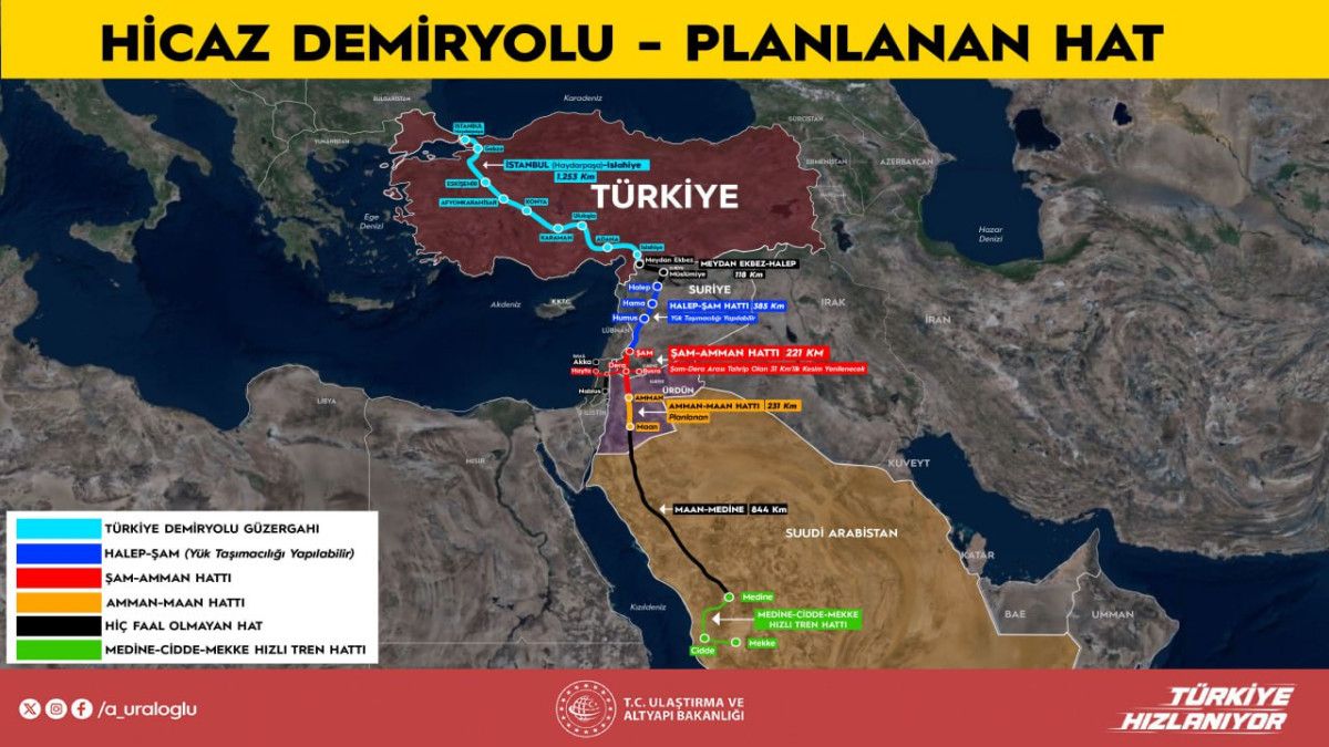 Geçtiğimiz aylarda, Türkiye-Suriye-Ürdün iş birliğiyle tarihi Hicaz Demiryolu Hattı’nın yeniden işlerlik kazanmasına yönelik çalışmalar başlatılmıştı.