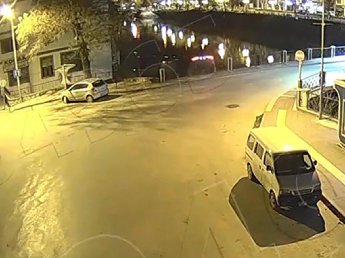 Kaza anı çevredeki güvenlik kamerasınca kaydedildi.