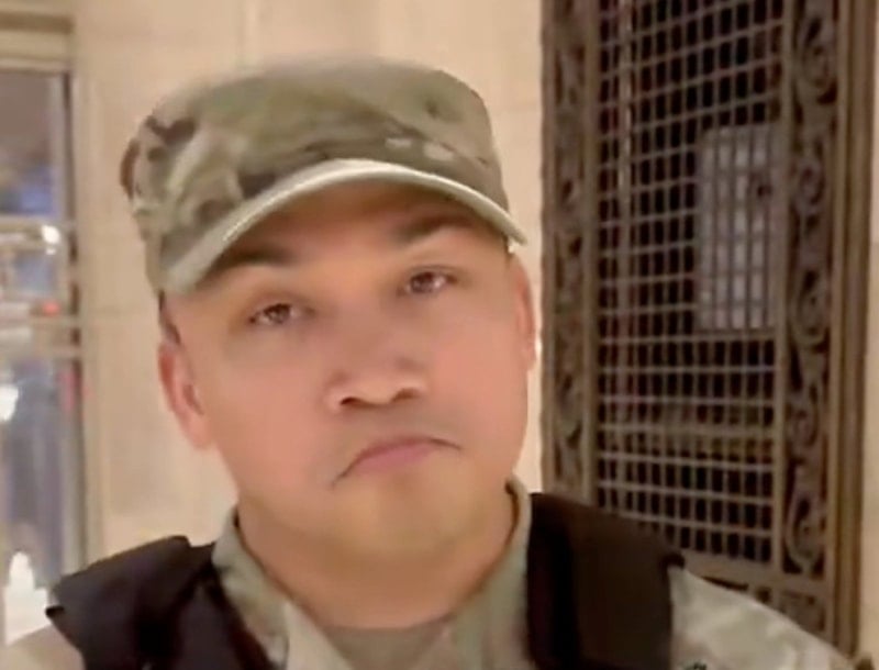 Ancak asker, soruların hiçbirine net bir yanıt vermezken, o anları kayda alan şahıs, “Bu soruya cevap veremez misiniz, Amerika önce geliyor diyemiyor musunuz?” sözleriyle askerin üzerine gitti.