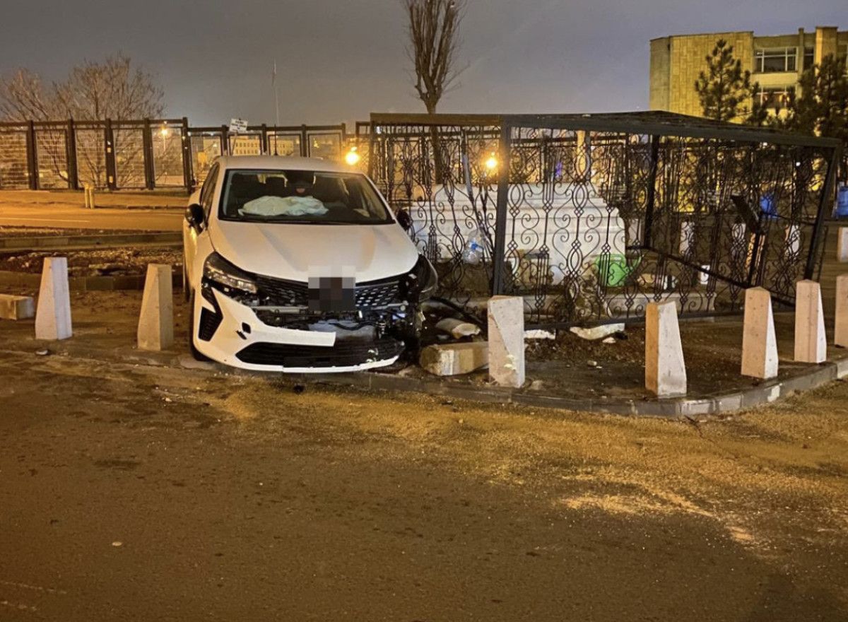 Sürücüsünün kontrolünü kaybettiği otomobil, türbeye çarparak durabildi.