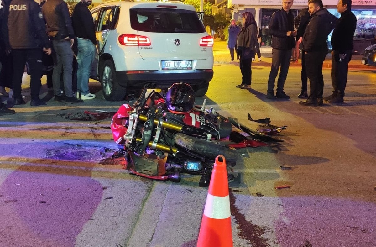 Antalya Demokrasi Bulvarı’nda Kadir Akbulut’un motosikleti, ara sokaktan yola çıkan Mehmet Tayyar Işık’ın kullandığı otomobille çarpıştı.
