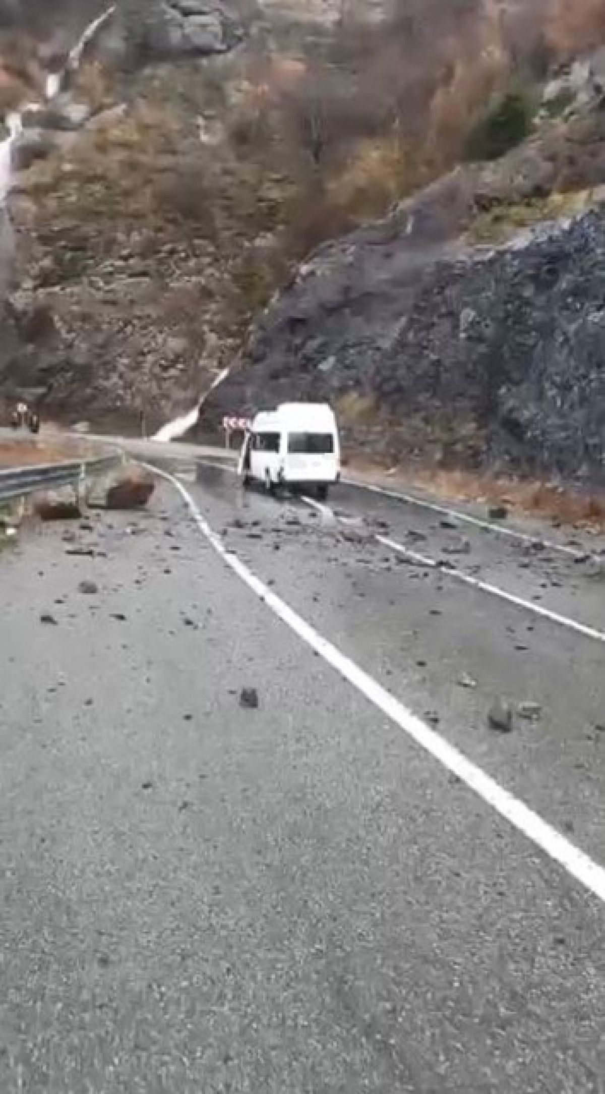Edinilen bilgilere göre, yamaçtan kopan dev kaya parçaları, Artvin yönünde giden minibüsün üzerine düştü.