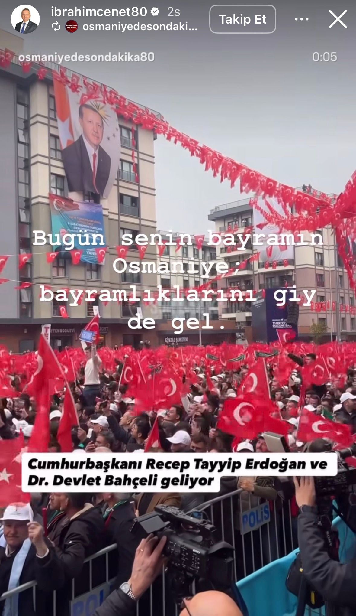 Çenet’in sosyal medya hesaplarından “Bugün senin bayramın Osmaniye, bayramlıklarını giy de gel” ve “Bugün bin atlı çocuklar gibi şendik. Teşekkürler Osmaniye” paylaşımı yaptı.