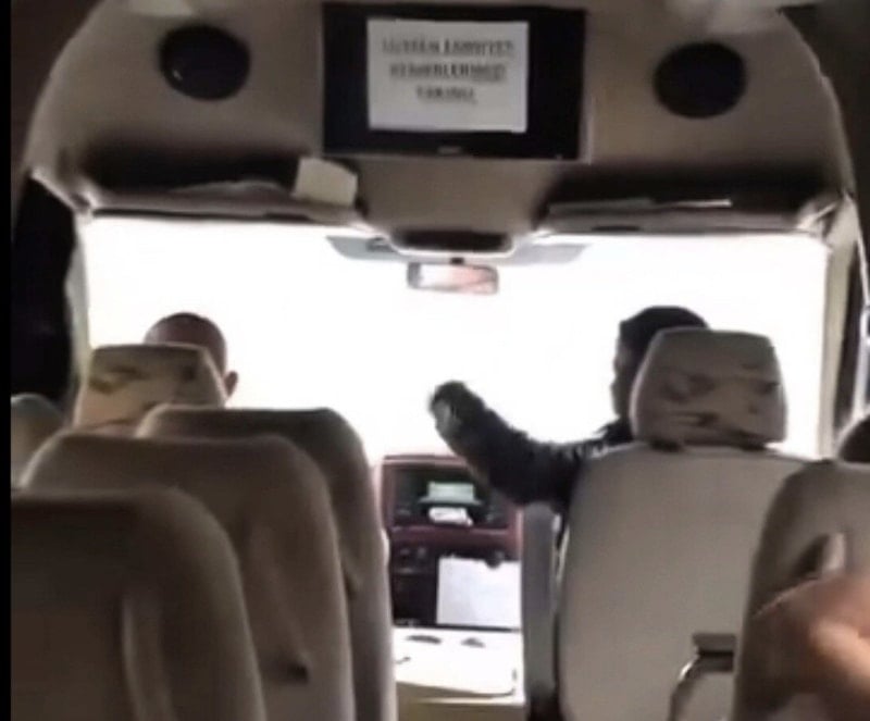 Araçtaki arbede, başka bir yolcu tarafından cep telefonu kamerasıyla kayda alındı.