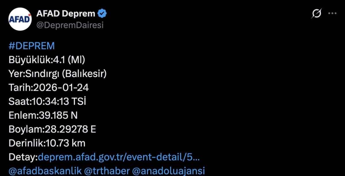 Sındırgı ilçesinde gece 00:24’te 5.1 büyüklüğünde deprem meydana geldi.