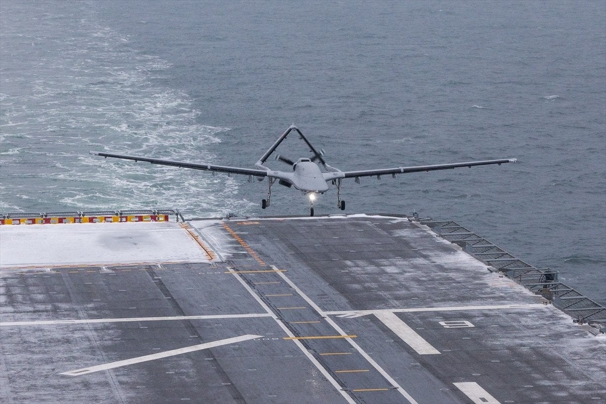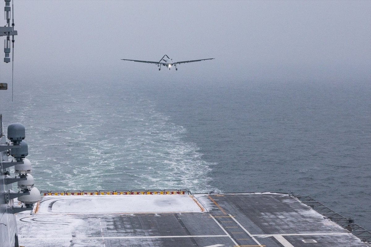 Şiddetli rüzgarın deniz üzerinde yarattığı türbülanslı ortama rağmen kararlı uçuş karakteristiğini koruyan milli SİHA, uçuş görevini başarıyla tamamlayarak şiddetli soğuk nedeniyle buz tutan pisti temizlenen TCG ANADOLU’ya otonom iniş gerçekleştirdi.