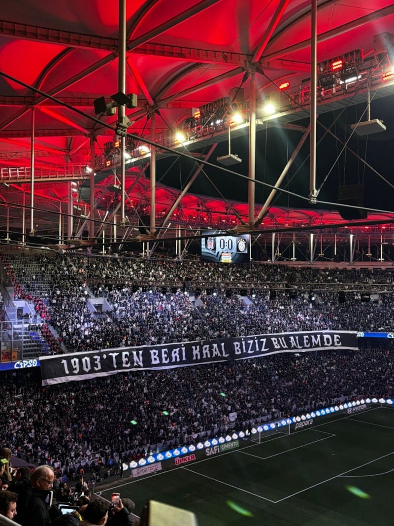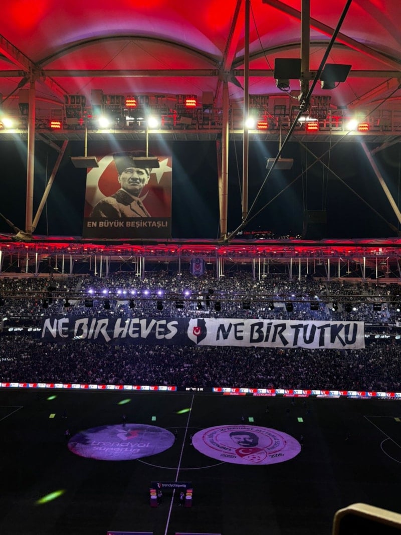 Ayrıca elinde Beşiktaş atkısı olan bir taraftar görseli de koreografi olarak tribünlerde gösterildi.