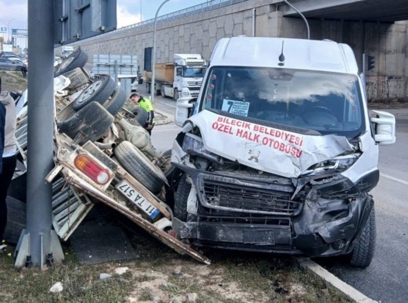Bilecik-Osmaneli-Sakarya kara yolu üzerindeki Bilecik Eğitim ve Araştırma Hastanesi kavşağında, hastane alt geçidinden hastane istikametine ilerleyen İsmail K. yönetimindeki 11 TA 517 plakalı kamyonet, kırmızı ışık ihlali yaptı. Bu sırada üniversite yönünden şehir merkezine doğru seyreden Necdet K. idaresindeki 11 HO 1076 plakalı halk minibüsüyle çarpıştı.