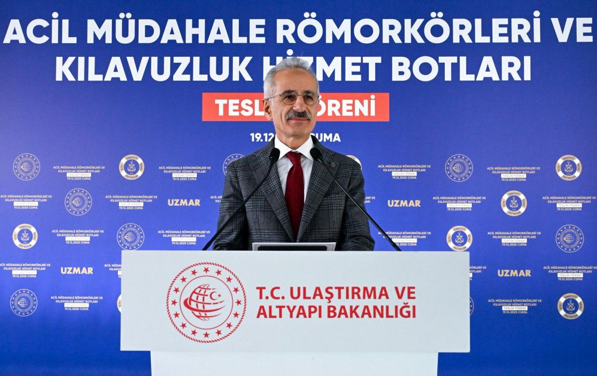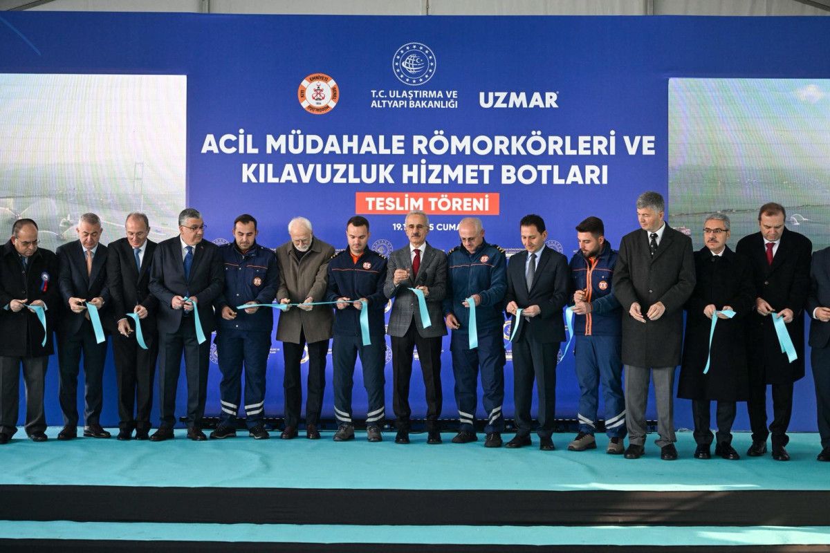 Ulaştırma ve Altyapı Bakanı Abdulkadir Uraloğlu, Kıyı Emniyeti Genel Müdürlüğüne Acil Müdahale Römorkörleri ve Kılavuzluk Hizmet Botları Teslim Töreni’nde konuştu. Bakan Uraloğlu, 2 Acil Müdahale Römorkörü ile 6 Kılavuzluk Hizmet Botu’nu Kıyı Emniyeti Genel Müdürlüğü’nün güçlü filosuna katmaktan duyduğu memnuniyeti dile getirdi.
