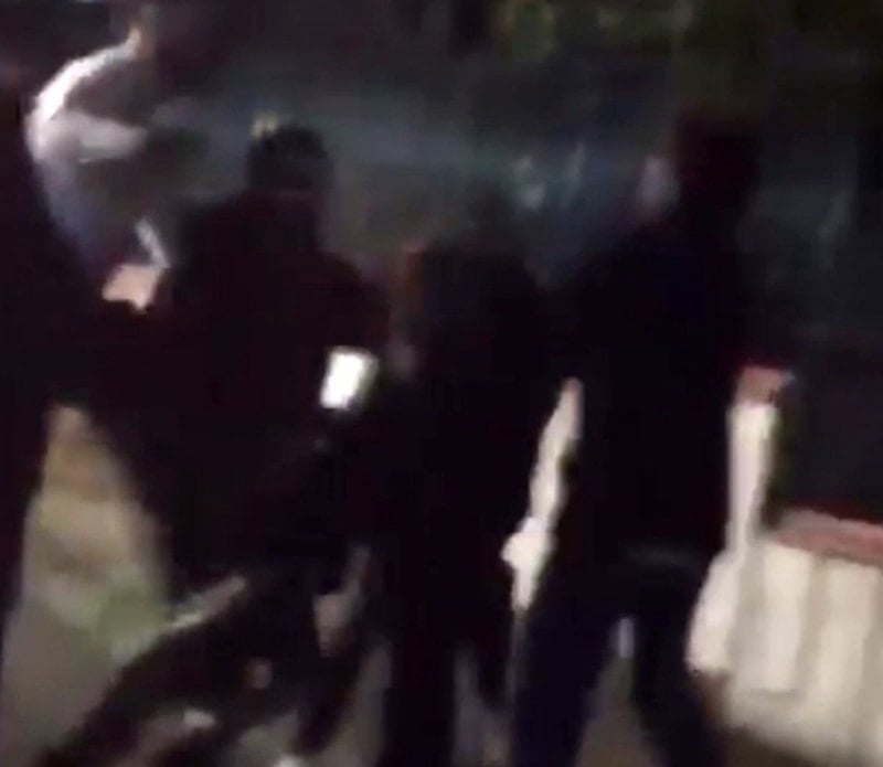 Cep telefonu kamerasına yansıyan görüntülerde, yolun sol tarafında yere düşen aile babasının darbedildiği, diğer tarafta ise anne ile grup arasında tartışma ve arbede yaşandığı anlar yer aldı.