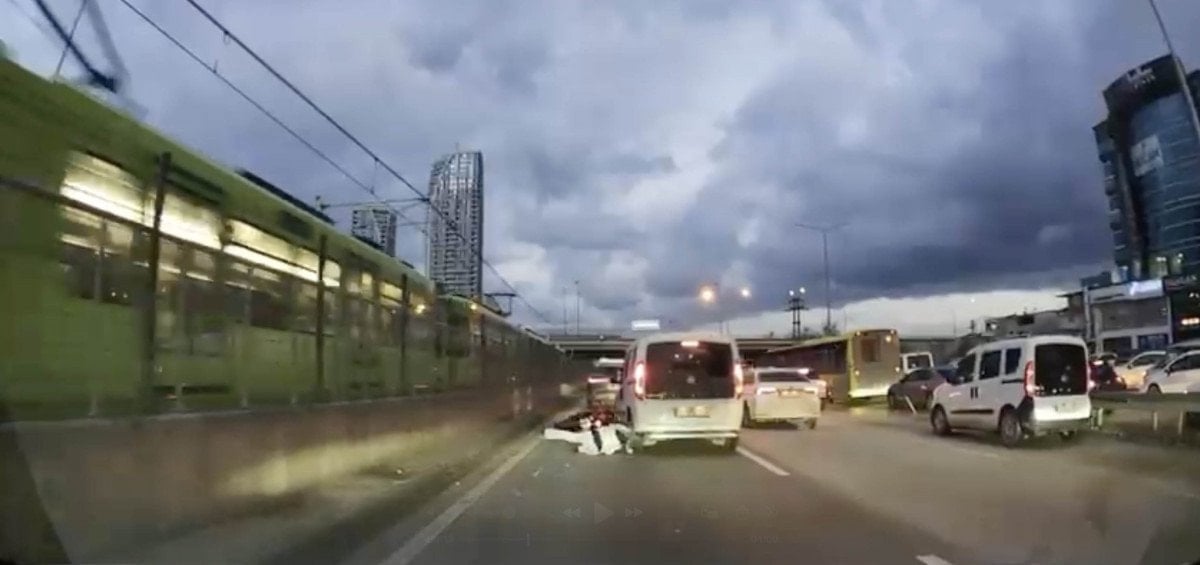 Motosikletli kadın sürücü, kamyonetin tekerleği altında kalmaktan son anda kurtuldu.
