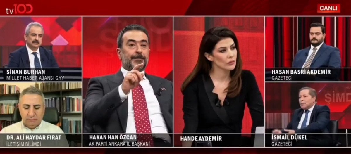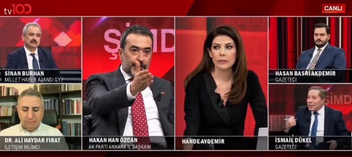 AK Parti Ankara İl Başkanı Hakan Han Özcan, TV100’de katıldığı canlı yayında gündeme ilişkin değerlendirmelerde bulundu. Program sırasında gazeteci İsmail Dükel’in partinin adını “AKP” olarak telaffuz etmesi üzerine Özcan söz alarak düzeltme yaptı.