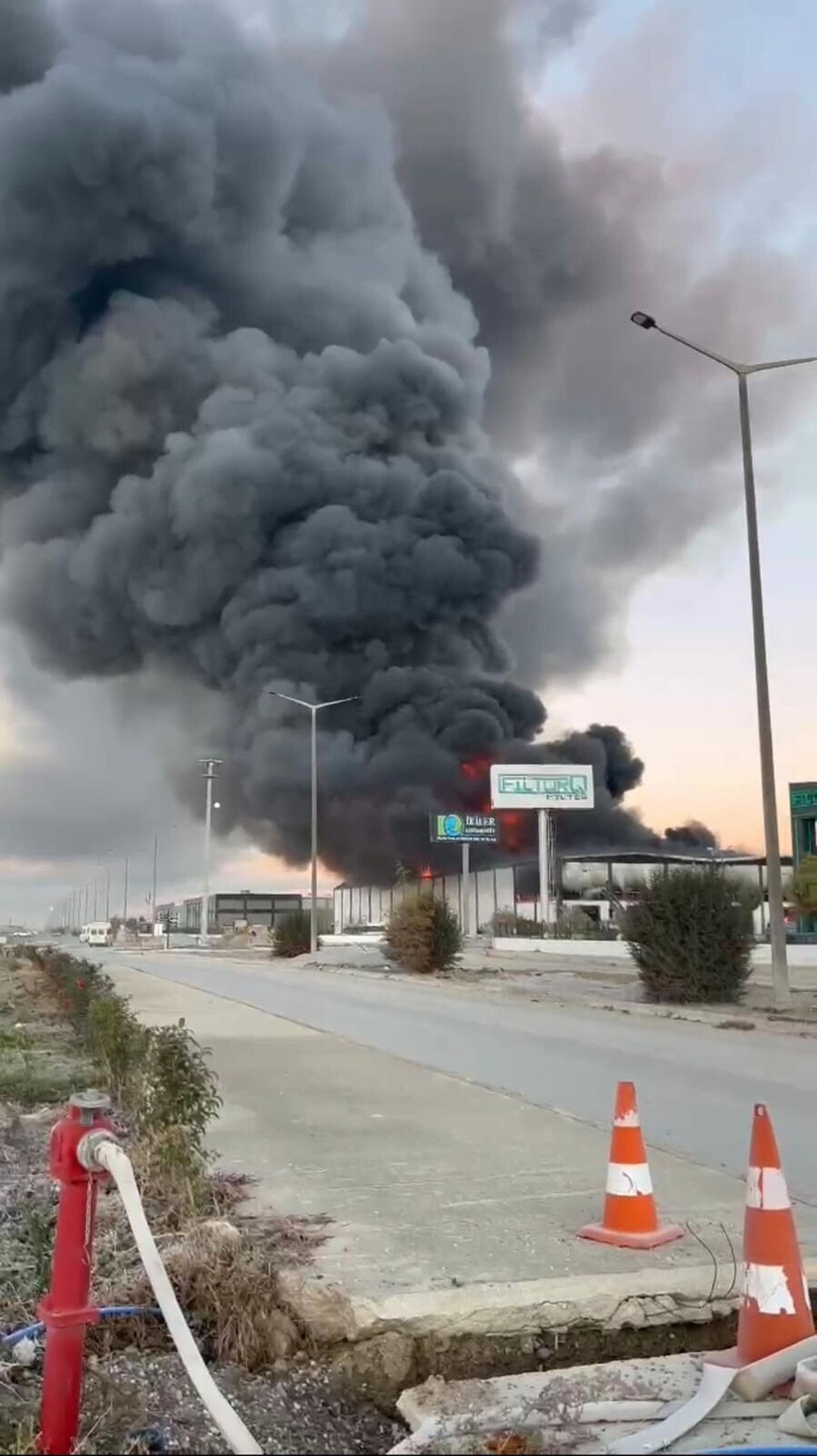 Fabrikadan yükselen simsiyah dumanlar ilçenin pek çok noktasından görünürken, itfaiye ekipleri yangını büyük ölçüde kontrol altına aldı.