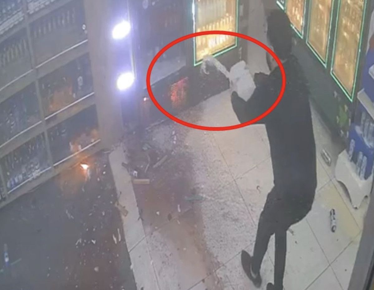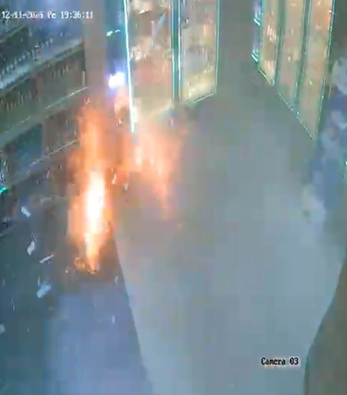 Görüntülerde, yüzü kapalı şüphelinin kapısını açtığı marketten içeri patlayıcı madde atıp kaçtığı, bir süre sonra patlamanın meydana geldiği ve yangın çıktığı, iş yerinin yanından geçen bir kadının da patlama sırasında kırılan camlardan etkilenip, hızla bölgeden uzaklaştığı görüldü.