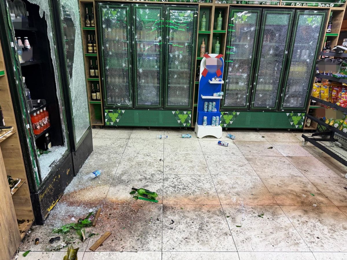 Patlama nedeniyle markette hasar oluştu.
