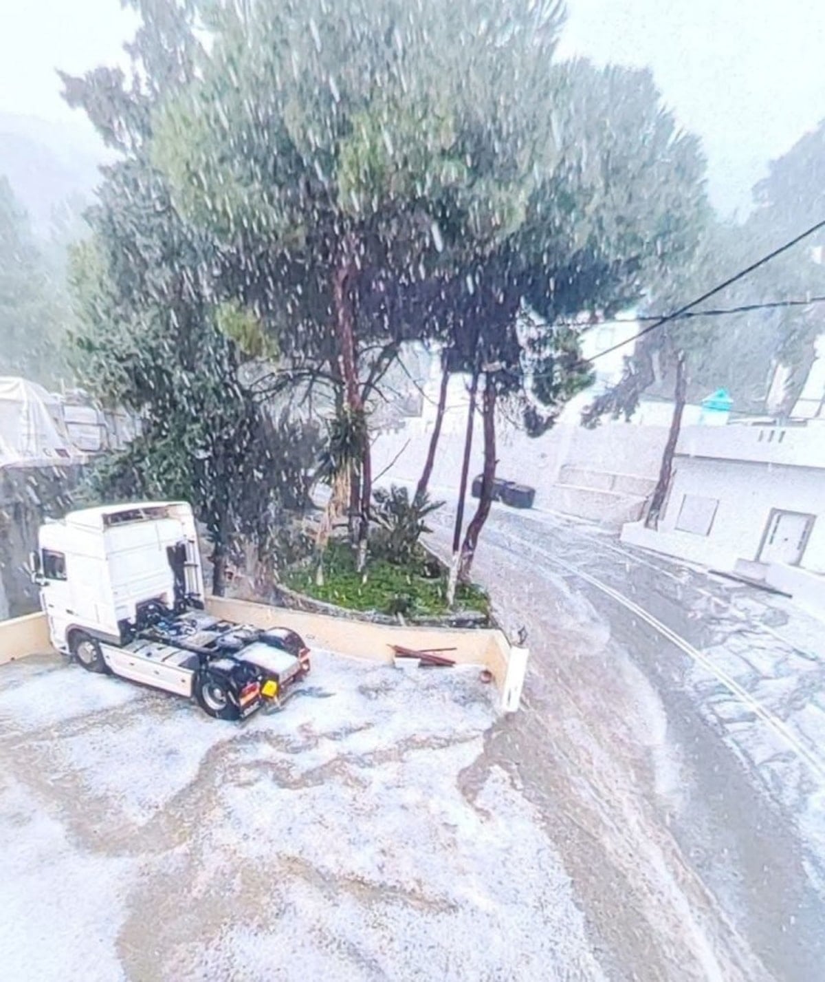 Sadece bir saat içerisinde yollar, bahçeler, turistik plajlar ve tarım arazileri dolu ve kar tabakasıyla kaplandı, trafik felç oldu.