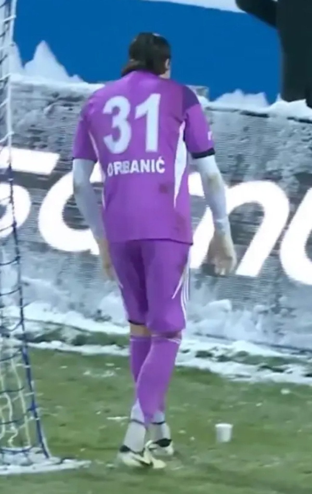 Erzurumspor FK’nın kalecisi Matija Orbanic, soğuktan korunmak adına kalesinin yanına bıraktığı çayı maçın oynandığı sırada içti.