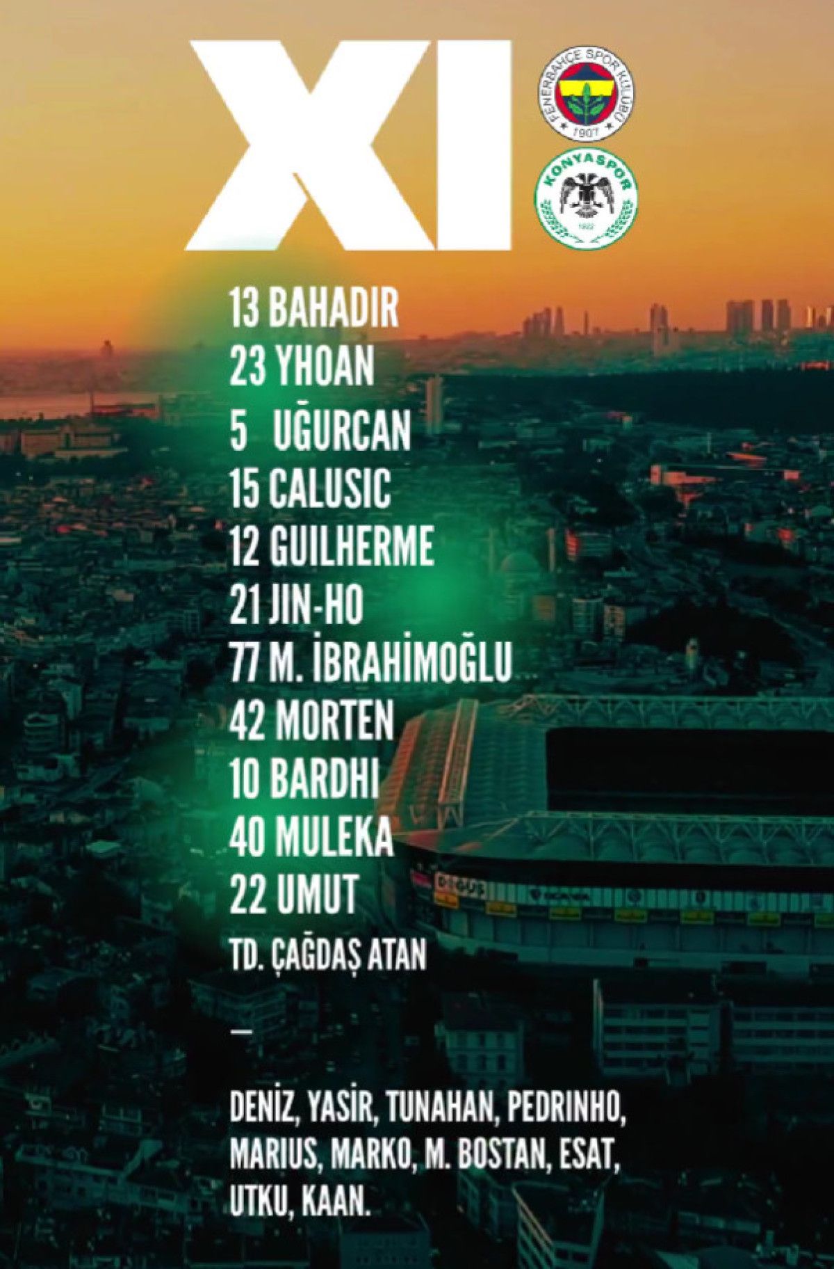Fenerbahçe – Konyaspor maçının ilk 11’leri
