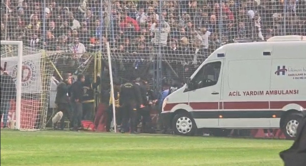 Hızla sahaya giren sağlık ekipleri, ilk müdahalenin ardından ağır yaralanan taraftarı ambulansla hastaneye kaldırdı.
