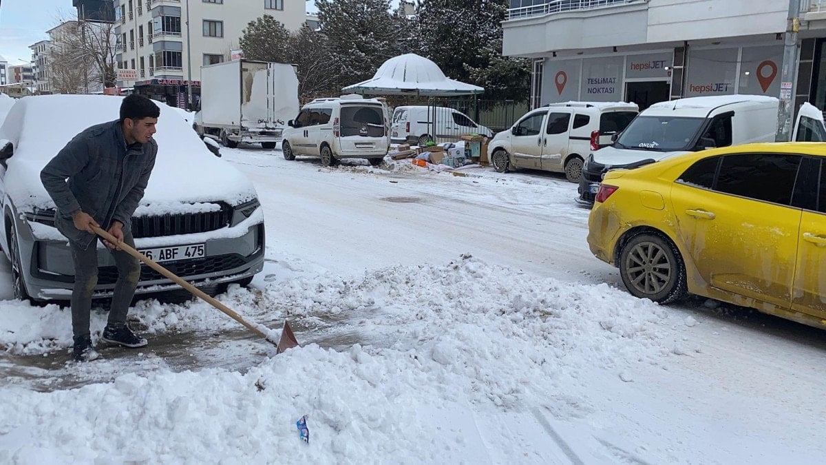 Yağış nedeniyle 850 metre rakımlı kent merkezinde kar kalınlığı 10 santimetreye ulaştı.