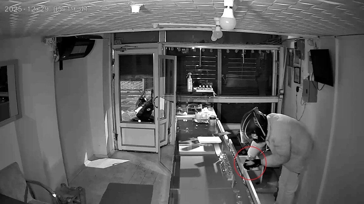 Kaskını düzelttikten sonra tezgahın arkasına geçen şüpheli, cep telefonunun ışığıyla çekmeceleri tek tek açarak yaklaşık 5,5 kilo altını çalarak uzaklaştı.