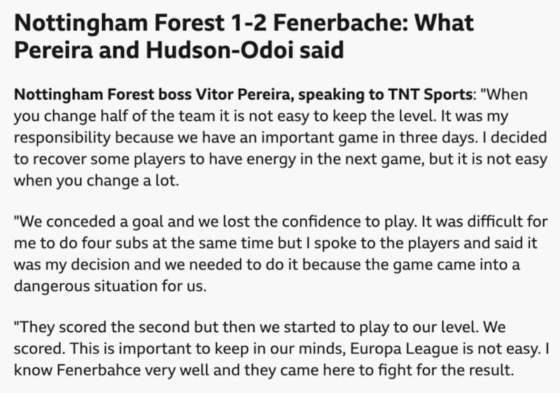 Avrupa Ligi son 16 turuna zar zor yükselmiş olabilirler ancak Pereira’nın teknik direktörlük görevindeki üçüncü maçında Forest, hiç de ikna edici bir performans sergileyemedi. Devre arasında taraftarlar tarafından yuhalandı.