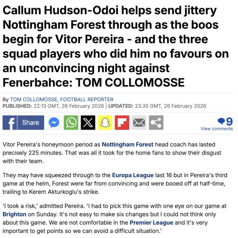 Yine İngiliz basını, Forest’ın çiçeği burnunda teknik direktörü Vitor Perreira’yı hedef aldı.