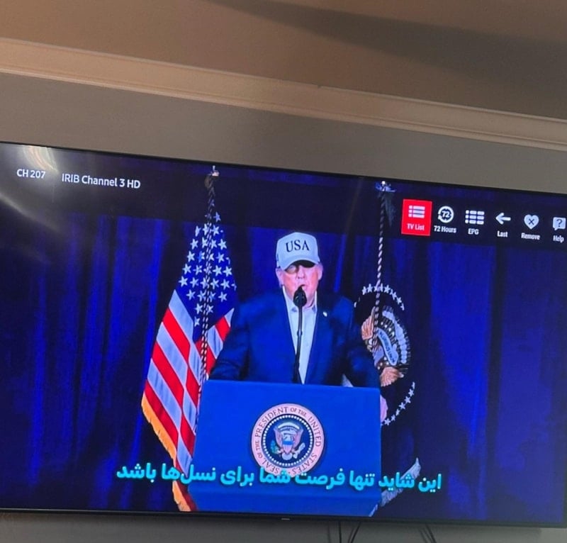 Yayın kesintisi sırasında ABD Başkanı Donald Trump ile İsrail Başbakanı Binyamin Netanyahu’nun İran halkına hitaben yaptığı konuşma Farsça altyazıyla ekrana getirildi.