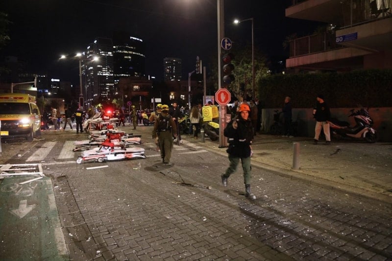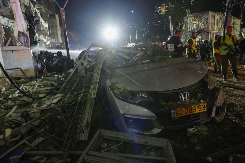 ABD ve İsrail’in ortak saldırısının ardından İran’ın misilleme olarak gerçekleştirdiği saldırıda, Büyük Tel Aviv olarak bilinen Gush Dan bölgesindeki iki binaya doğrudan isabet eden füze çevredeki bina ve araçlarda ağır hasara yol açtı.