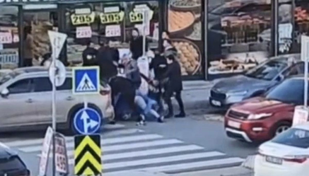 Öfkeli tarafların çevredekile aldırış etmeden birbirine saldırdıkları kavga anları, cep telefonu kamerasıyla kaydedildi.