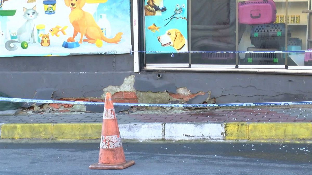 İstanbul Sarıyer Çamlıtepe Mahallesi Akgün Caddesi’nde pet shop olarak kullanılan 2 katlı binanın zemininde, henüz bilinmeyen bir nedenle kayma meydana geldi.