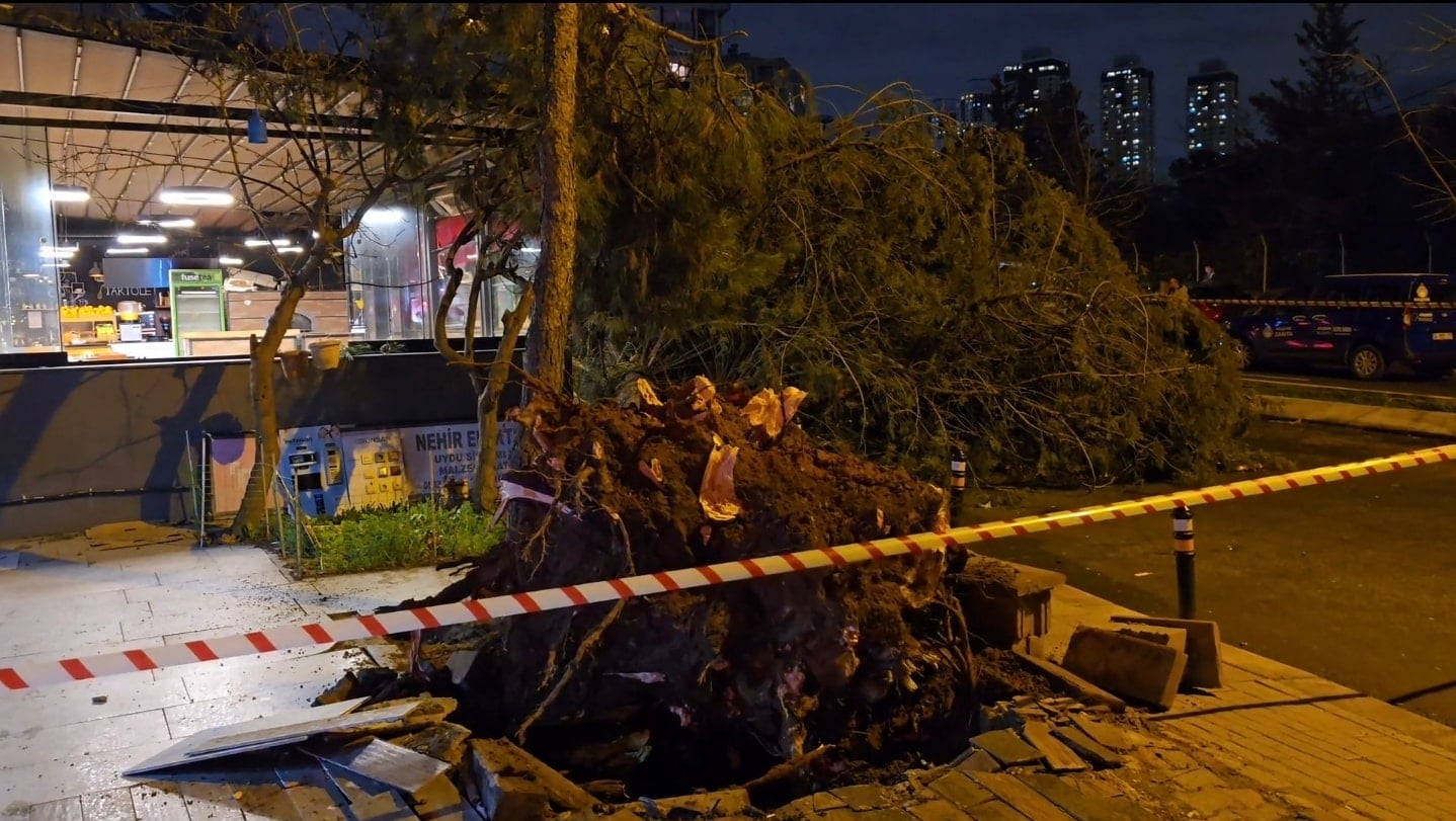 Aynı dakikalarda bir diğer fırtına haberi de Anadolu Yakası’ndan geldi. Ataşehir Yenişehir Mahallesi Baraj Yolu Caddesi’nde kökünden sökülen bir ağaç, büyük bir gürültüyle park halindeki bir otomobilin ve yol kenarındaki bir iş yerinin üzerine düştü.