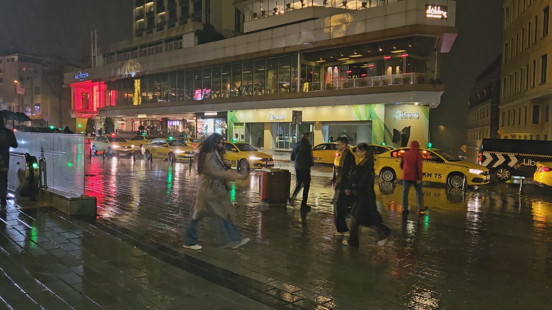 Uyarıların ardından İstanbul genelinde beklenen yağış ve fırtına akşam saatlerinde etkisini gösterdi. Özellikle Taksim Meydanı, İstiklal Caddesi ve Şişli çevresinde sağanak kısa sürede şiddetini artırdı.