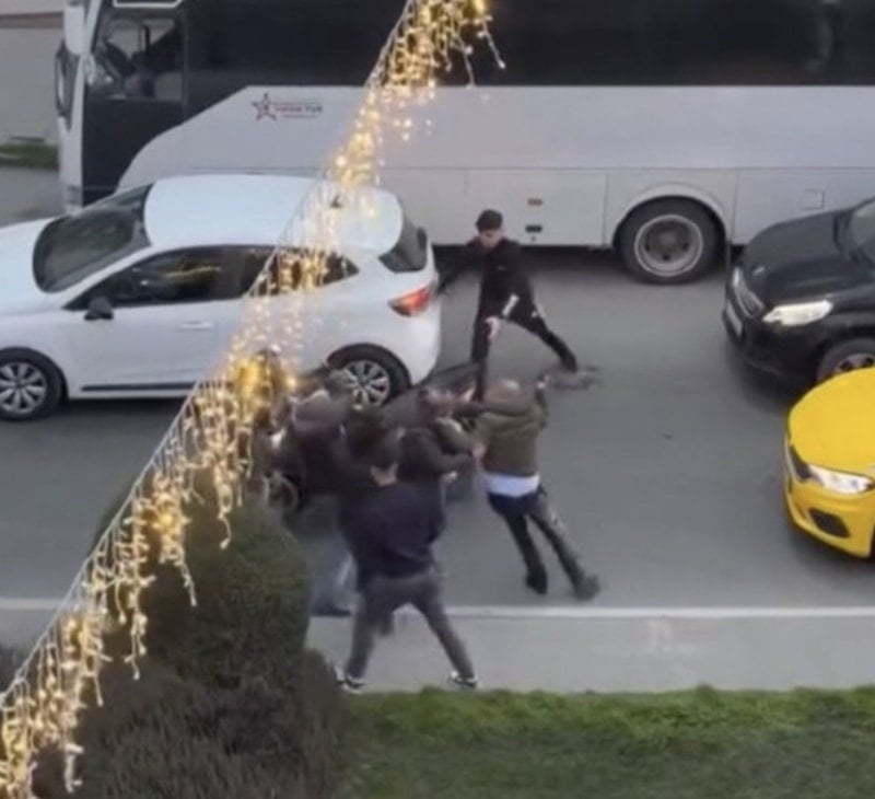 Araya giren çevredekiler tarafları ayırmaya çalışırken, araya giren bir kadının “Vurma” diye bağırdığı anlar cep telefonu kamerasına yansıdı.