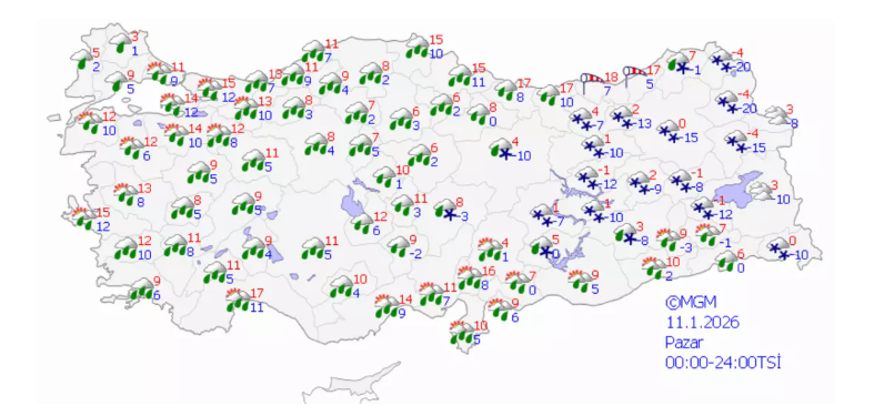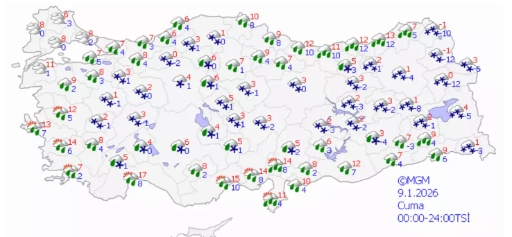 Yağışların Akdeniz ve Karadeniz kıyıları ile Güneydoğu Anadolu’nun güneyi, Denizli, Amasya, Tokat, Şırnak ve Siirt çevrelerinde yağmur ve sağanak; diğer yağış alan bölgelerde ise karla karışık yağmur ve kar şeklinde olması öngörülüyor. Hava sıcaklıklarının hissedilir derecede azalacağı ve mevsim normalleri civarında seyredeceği bildirildi.
