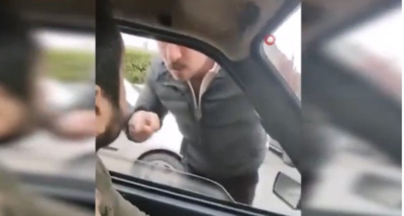 Şahıs, aracın açık camından içeriye uzanarak direksiyon başındaki kişiyi dışarı çıkarmaya çalıştı.