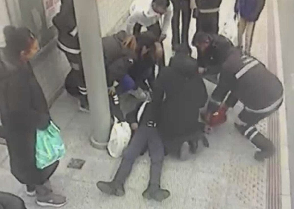 O sırada tren bekleyen bir sağlık çalışanı, Öğretim’in kalp krizi geçirdiğini ve nabzının atmadığını tespit edip kalp masajı yaptı.