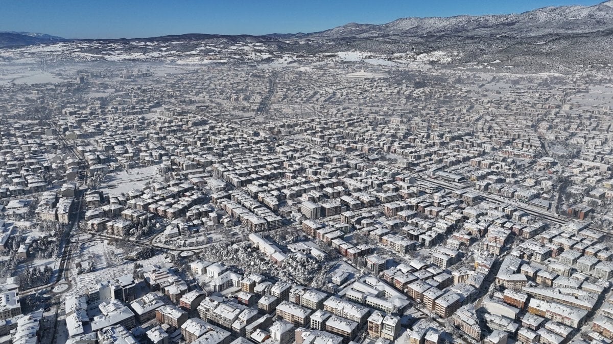 Karla kaplanan kent, dronla görüntülendi.