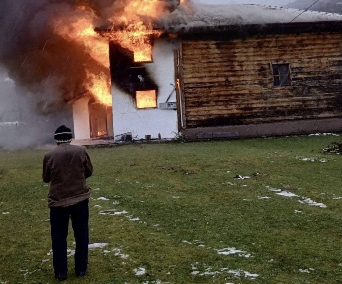 Cuma namazı sırasında çıkan yangında vatandaşlar son anda kendilerini dışarıya atarken kısa sürede büyüyen alevler caminin tamamını sardı.