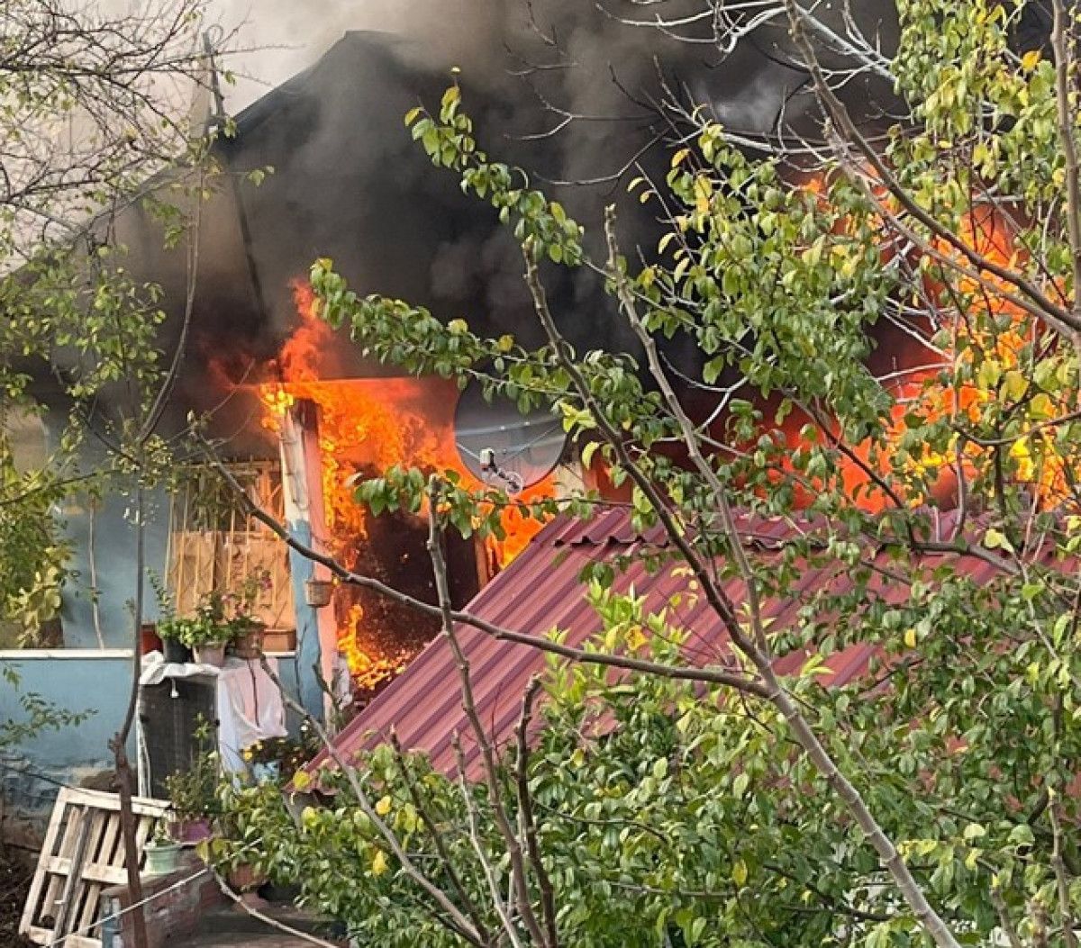 Parlamanın ardından evde yangın çıktı. Kısa sürede büyüyen alevler, mutfakta bulunan tüpün de patlamasıyla kontrolden çıktı. Yangın tüm evi sardı.