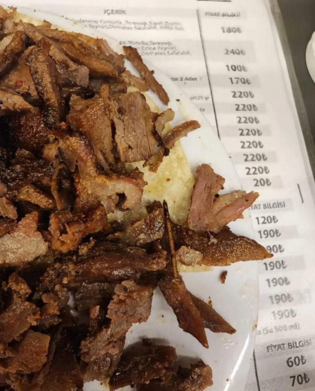 Gıda Bülteni’nde yer alan habere göre, eşi ve üç yaşındaki kızı ile birlikte Köfteci Yusuf’a giden Önder Çok, sipariş ettikleri dönerin içinden ince bir metal çivinin çıkması üzerine büyük şaşkınlık yaşadı.