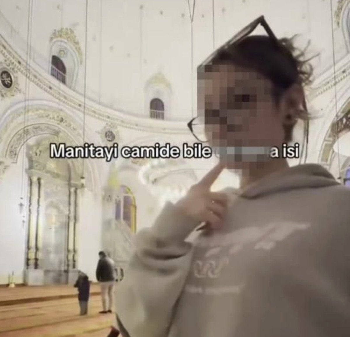 Söz konusu kişi, o anları cep telefonuyla kaydederek sosyal medya hesabından “Manitayı camide darlama işi” ifadeleriyle paylaştı.