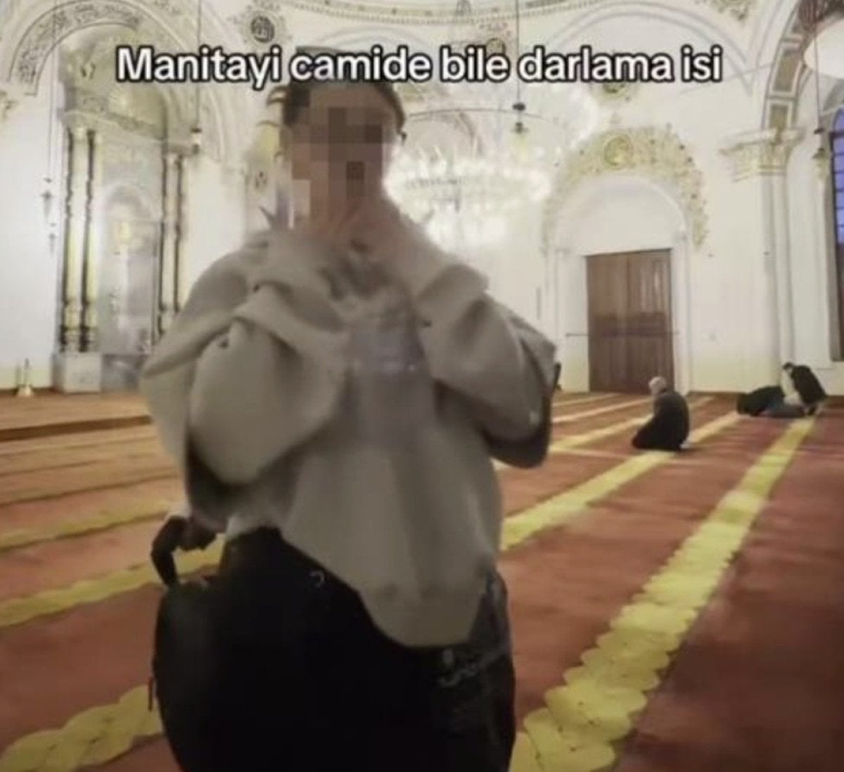 Görüntülerde, bir genç kızın cami içerisine uygunsuz şekilde girdiği, rahatsız edici hareketler sergilediği kaydedildi.