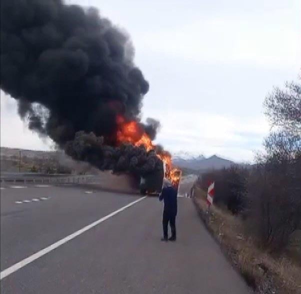 Tahliyenin hemen ardından alevler tüm aracı sararak minibüsü adeta bir alev topuna çevirdi. İhbar üzerine olay yerine jandarma ve itfaiye ekipleri sevk edildi. Jandarma ekipleri güvenlik amacıyla yolu trafiğe kapatırken, aracının küle dönüşünü izleyen sürücü Aytaç, telefonla görüştüğü kişilere çaresizliğini anlattı. 112 Acil Çağrı Merkezi ile yaptığı görüşmede itfaiyenin henüz ulaşmadığını belirten sürücü, “Arabam yanıyor, gelmedi ablam gelmedi. Arabam yandı bitti abi, söndüremedim” diyerek feryat etti.