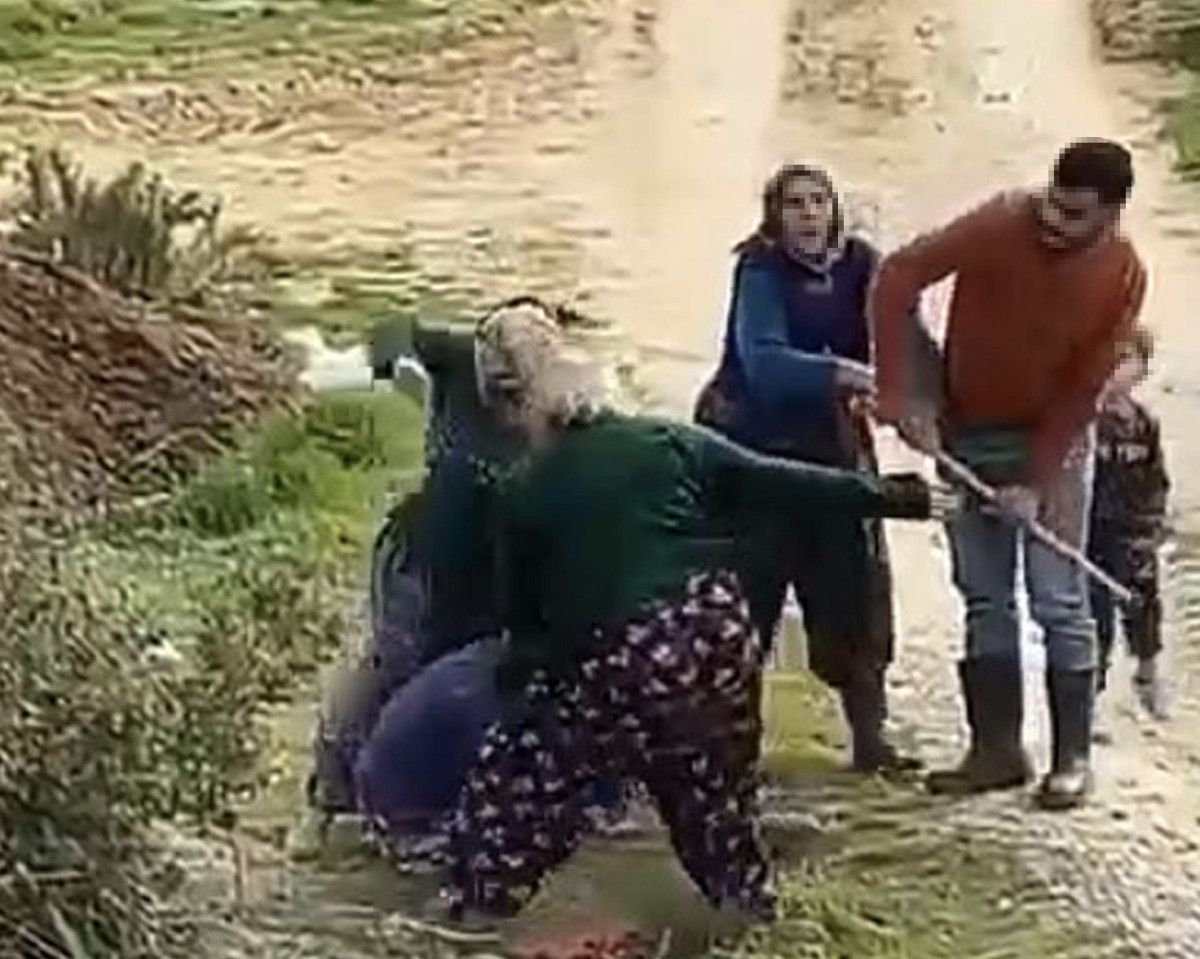Görüntülerde, ayrıca çevredekilerin kavga edenlerin yanına elinde sopayla gelen başka bir kadına engel olduğu da görüldü.