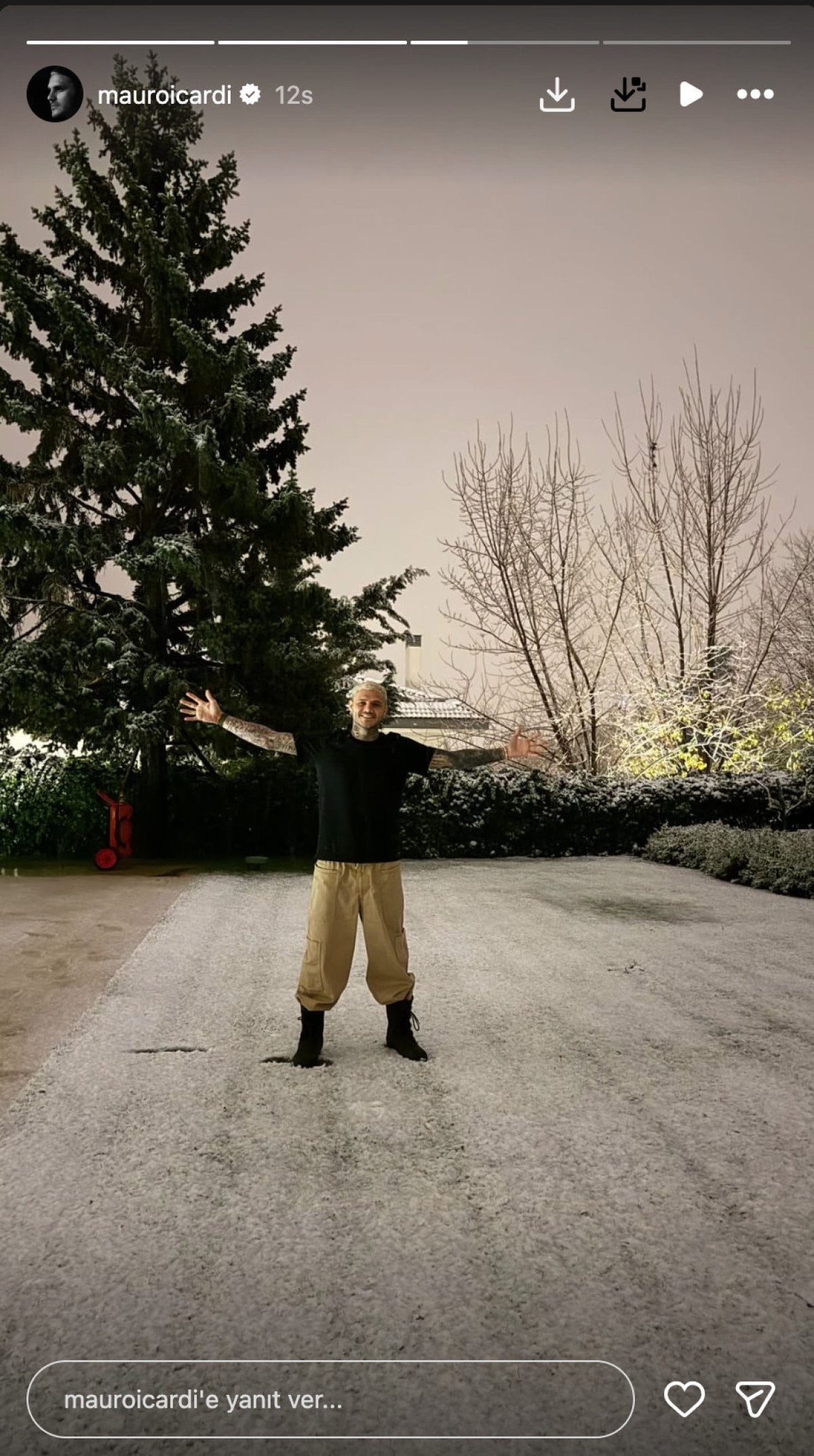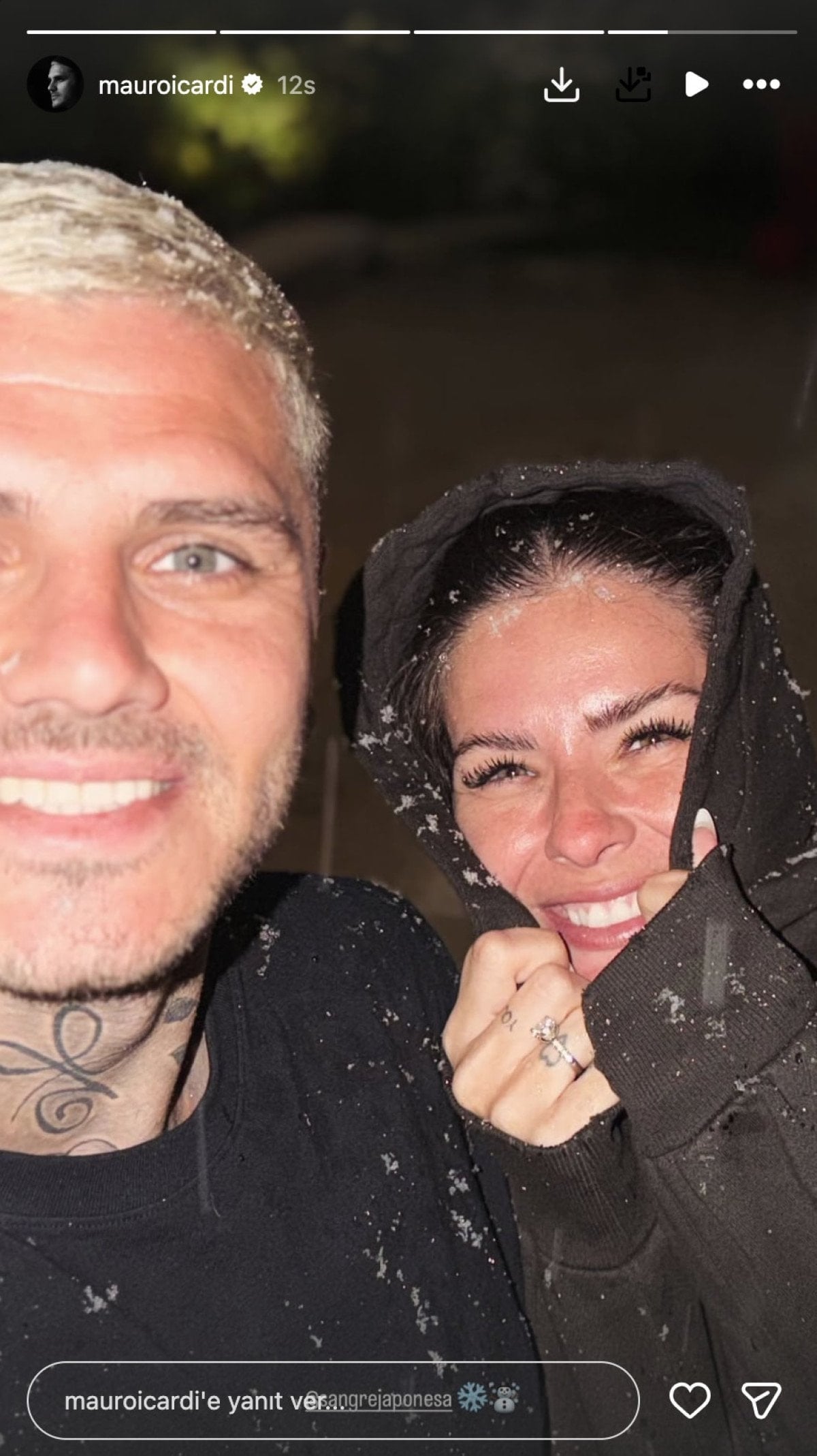 Mauro Icardi’nin kar sevinci! Sevgilisiyle kendini bahçeye attı