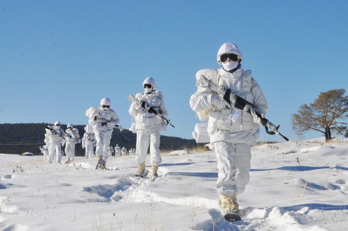 Bu kapsamda her felakette halkın yanında olan Mehmetçik kış şartlarında da eğitimlerine devam ediyor.