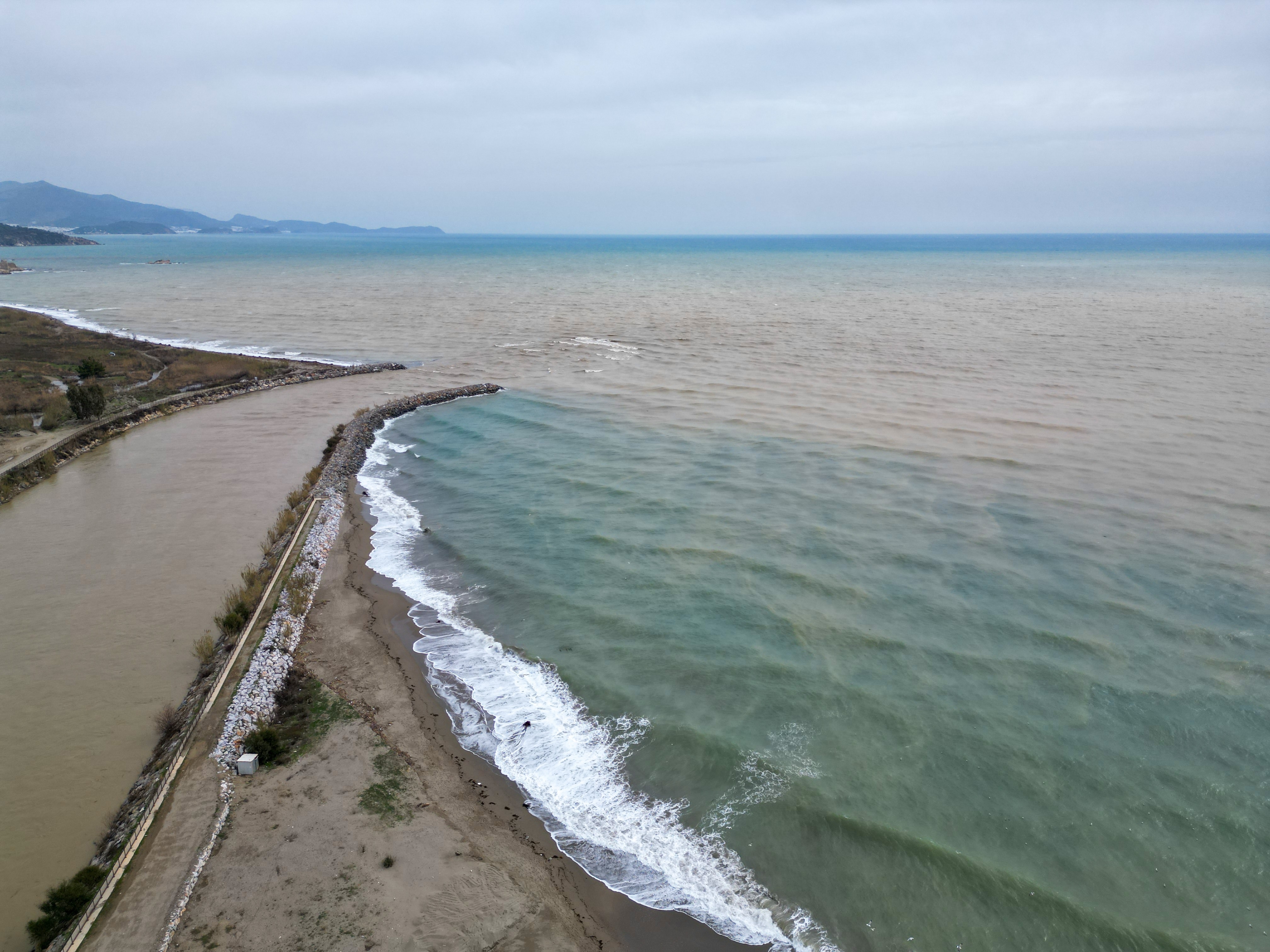 Barajın kapasitesinin dolması üzerine yetkililer, taşkın riskine karşı suyu kontrollü olarak bırakmaya başladı. Barajdan bırakılan sular ile yağışların etkisiyle debisi artan Dragon Çayı ve Sultan Çayı, yoğun miktarda balçığı denize taşıdı.